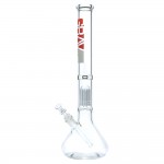 Grav Labs - 10-arm Tree Perc Beaker Base Glass BongThis scientific glass beaker base bong from Grav Labs is made in the USA (Austin, Texas) using only high grade borosilicate glass. Featuring a powerhouse of a slitted, 10-arm tree perc, the 5mm-thick, stemless tube design also includes a showerhead diffuser downstem with an inside cut 18.8mm > 14.5mm joint and a 14.5mm clear glass funnel bowl. Grav Labs' signature dual-purpose ice catcher also serves as a splashguard. With an extra-wide flare foot base and an extra-thick reinforced mouthpiece, this Grav Labs tube has a heft and quality you can feel when you hold it, and with such high-quality American glass construction, if you're not too clumsy it will be with you a long, long time!A color Grav Labs decal is applied to the tube in black, blue, red, green, or etched, as available. |