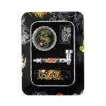 Tattoo Metal Pipe Gift Set with Acrylic GrinderGet everything you need but the weed with this Tattoo Metal Pipe Gift Set! The tough metal pipe measures just over 3 inches long, with an acrylic koi tattoo sleeve on the stem. The pipe's parts easily unscrew apart for easy cleaning of the airway, allowing an effortless draw every time. Scrape out the resin during lean times for one more sticky smoke! The 2-part acrylic grinder features shark teeth, a magnetized lid, and a cool Japanese dragon tattoo decal. You also get a pack of 5 metal pipe screens and a matching Japanese koi tattoo lighter.** All of this comes packed in a tattoo-themed tin with a clear acrylic window on the lid, perfect for storing your smoking kit and stash all in one place.The Tattoo Metal Pipe Gift Set not only makes a great gift, it's an ideal starter kit for anyone who's new to smoking! **PLEASE NOTE: due to shipping restrictions, we cannot ship flammable liquids overseas. If you are ordering from outside of continental Europe, the lighter in this set will be replaced with a similar fun smoking accessory from our warehouse. |